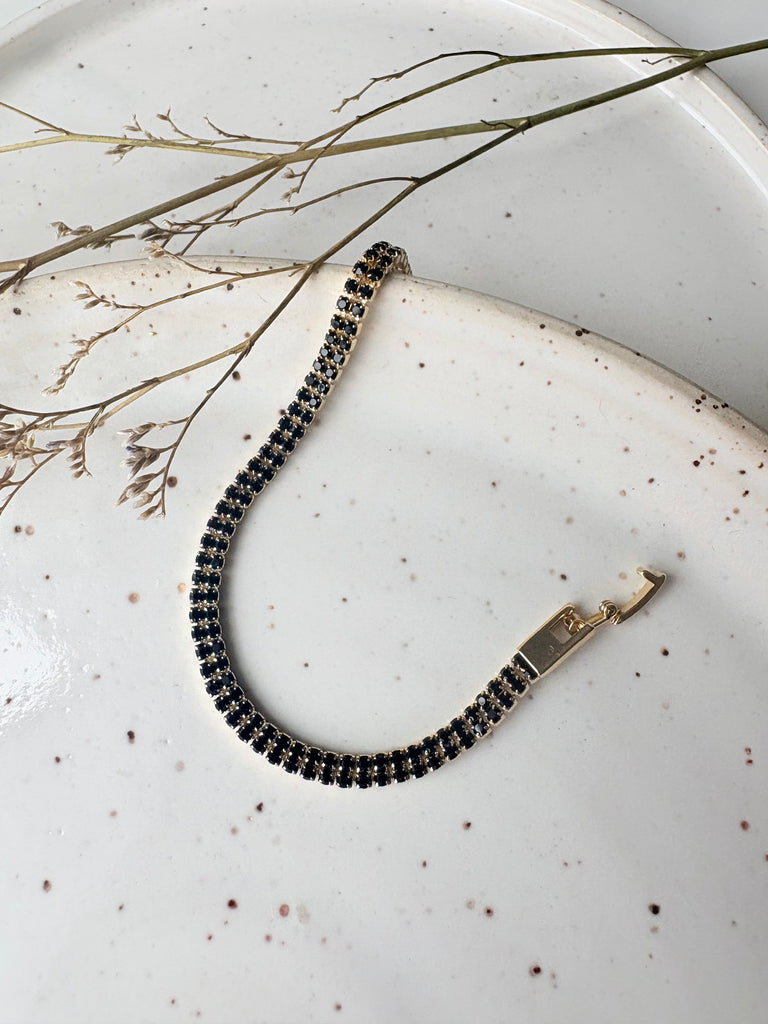 Bracelet en or jaune, délicatement embrassé de zircons noirs pour un éclat chic et moderne.